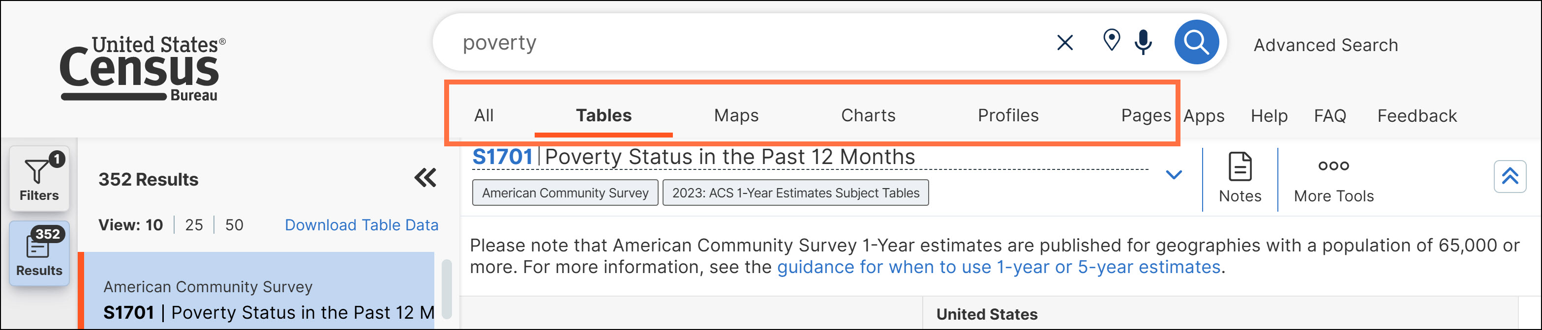 o Collapse the Filters/Results panels when you want to see more of the table, map, or chart across your screen