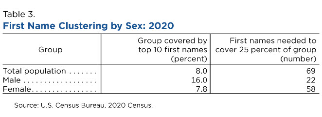 Compared to men, nearly three times as many names were needed to cover 25% of the female population (Table 3).