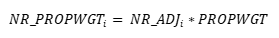 Step 4. Apply the calculated nonresponse adjustment factor to all complete responses in the appropriate cell. This results in a non-response adjusted property weight (NR_PROPWGT).