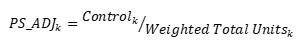 The adjustment factor (PS_ADJ) for each stratum is then calculated as the ratio of each stratum’s control total and the weighted sum of units for that stratum:
